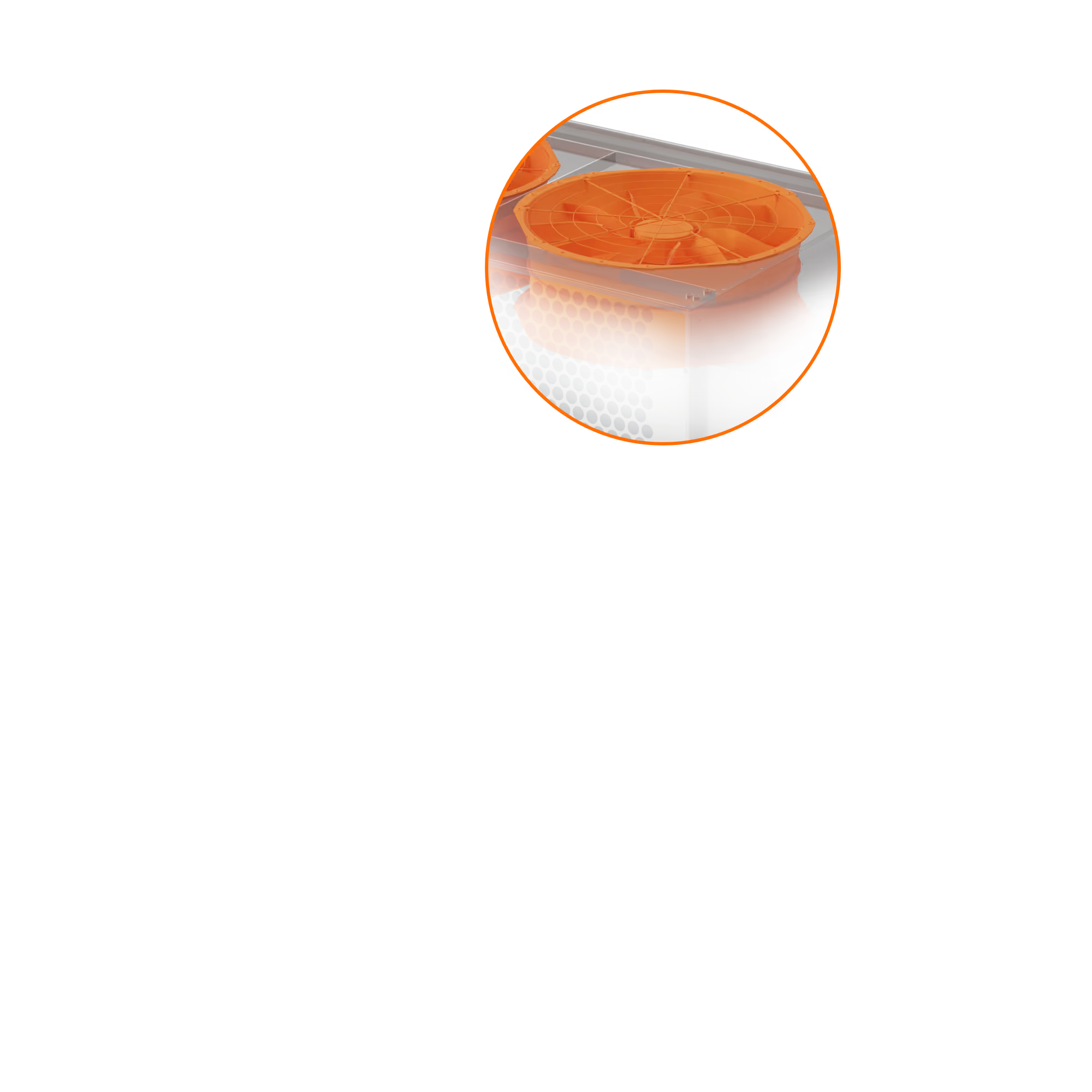 EC-fans with owlet tech for low noise emission.